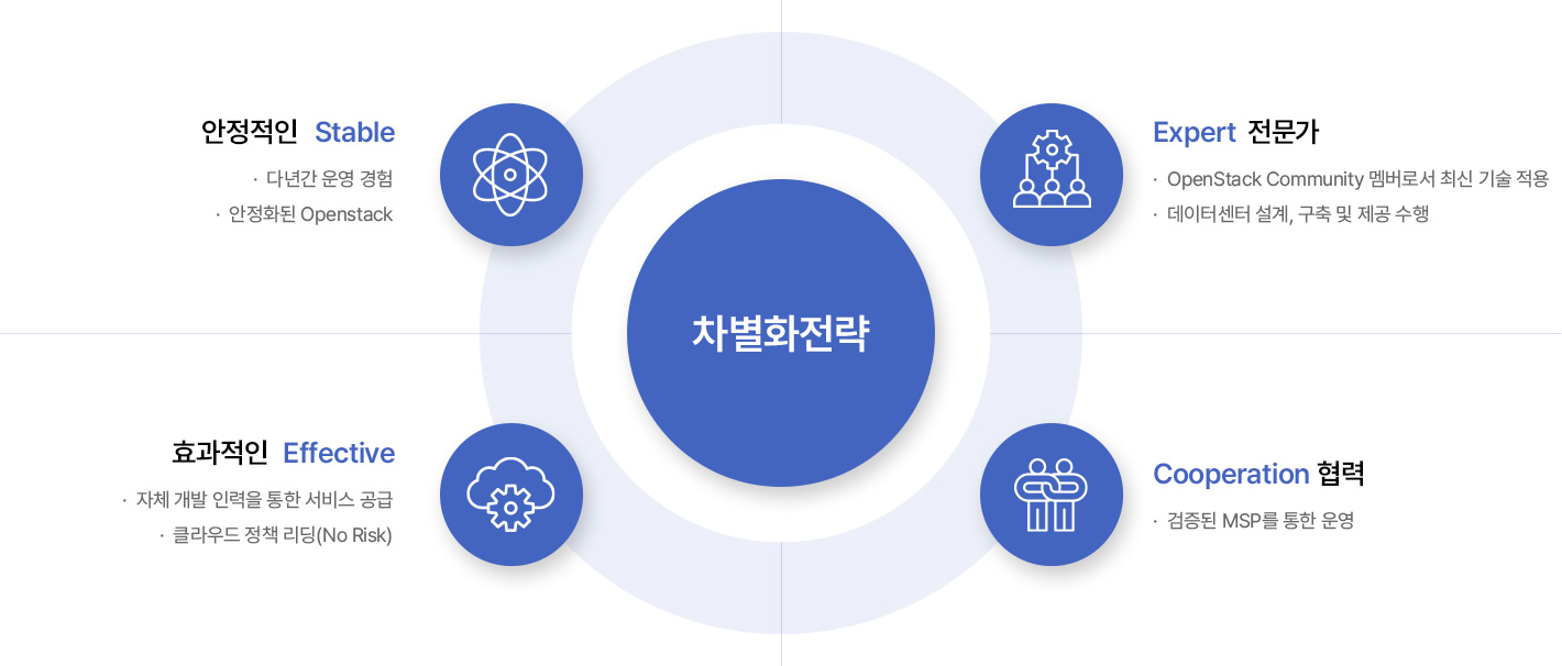 오픈소스 클라우드 플랫폼(오픈스택) 기반의 유연한 확장과 상호호환성을 제공합니다.