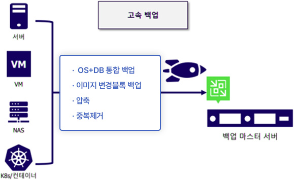 한번에 OS와 DB를 통합 백업하고 복구는 OS, 파일, DB 단위 등 유연한 복구를 제공합니다.