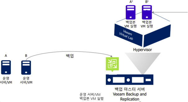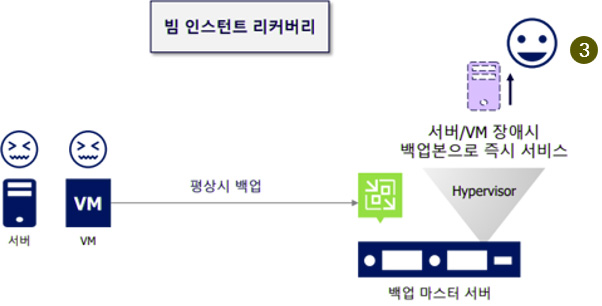 서버 또는 VM 장애 시 백업본으로 2-3내 즉시 서비스 재가동 기능을 지원합니다.